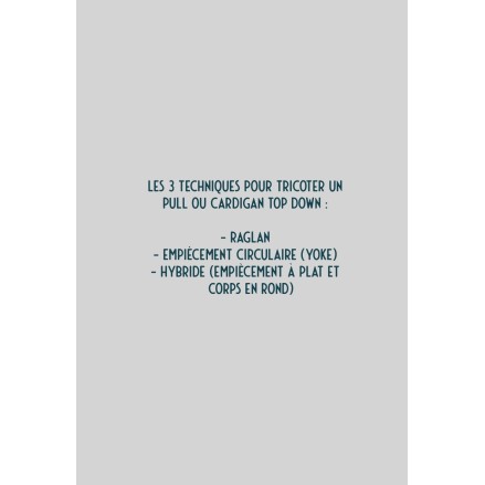 Il est tricoté en rond du bas vers le haut jusqu'à l'empiècement. Le point ajouré au bas des manches et du buste et au niveau des épaules lui donne charme et féminité.
